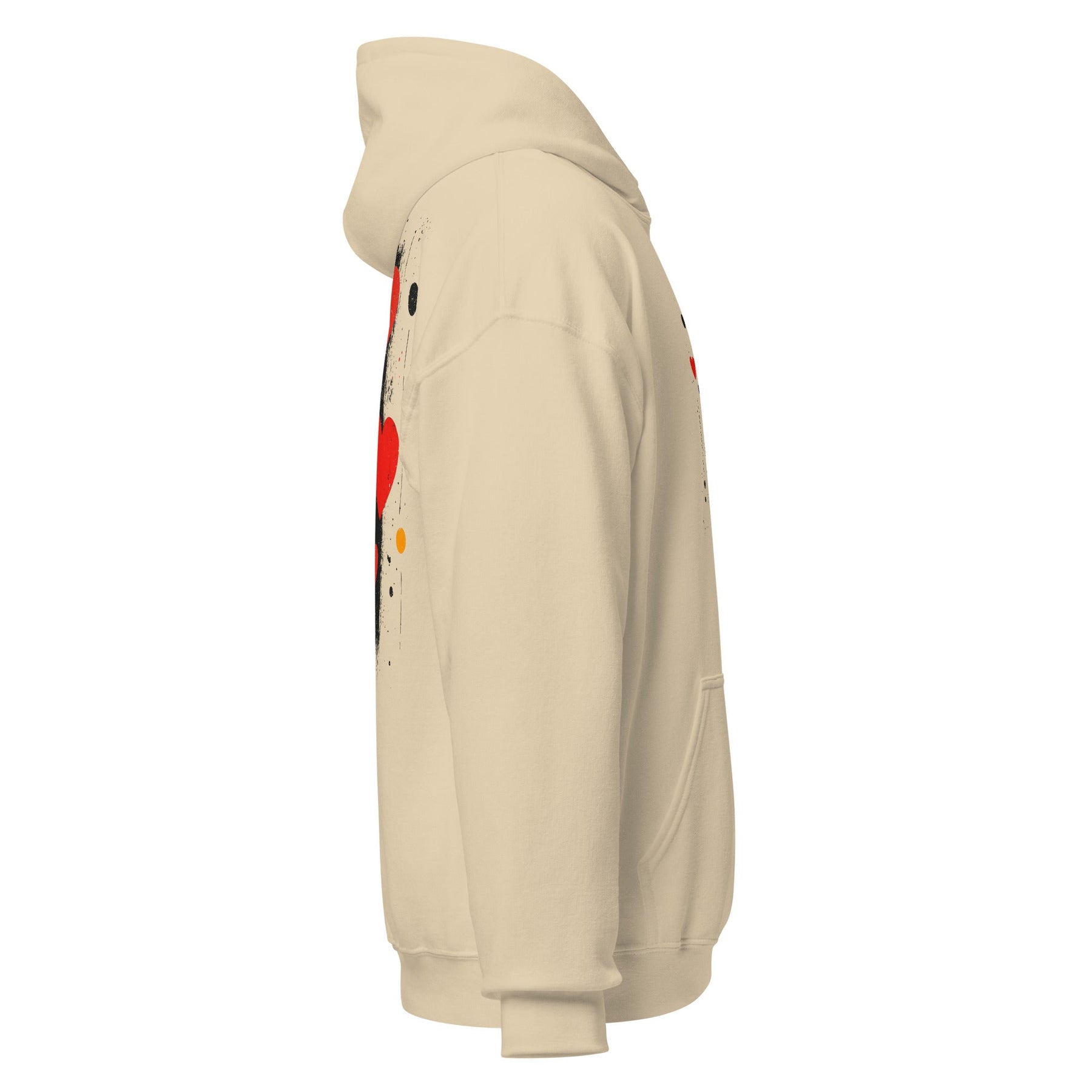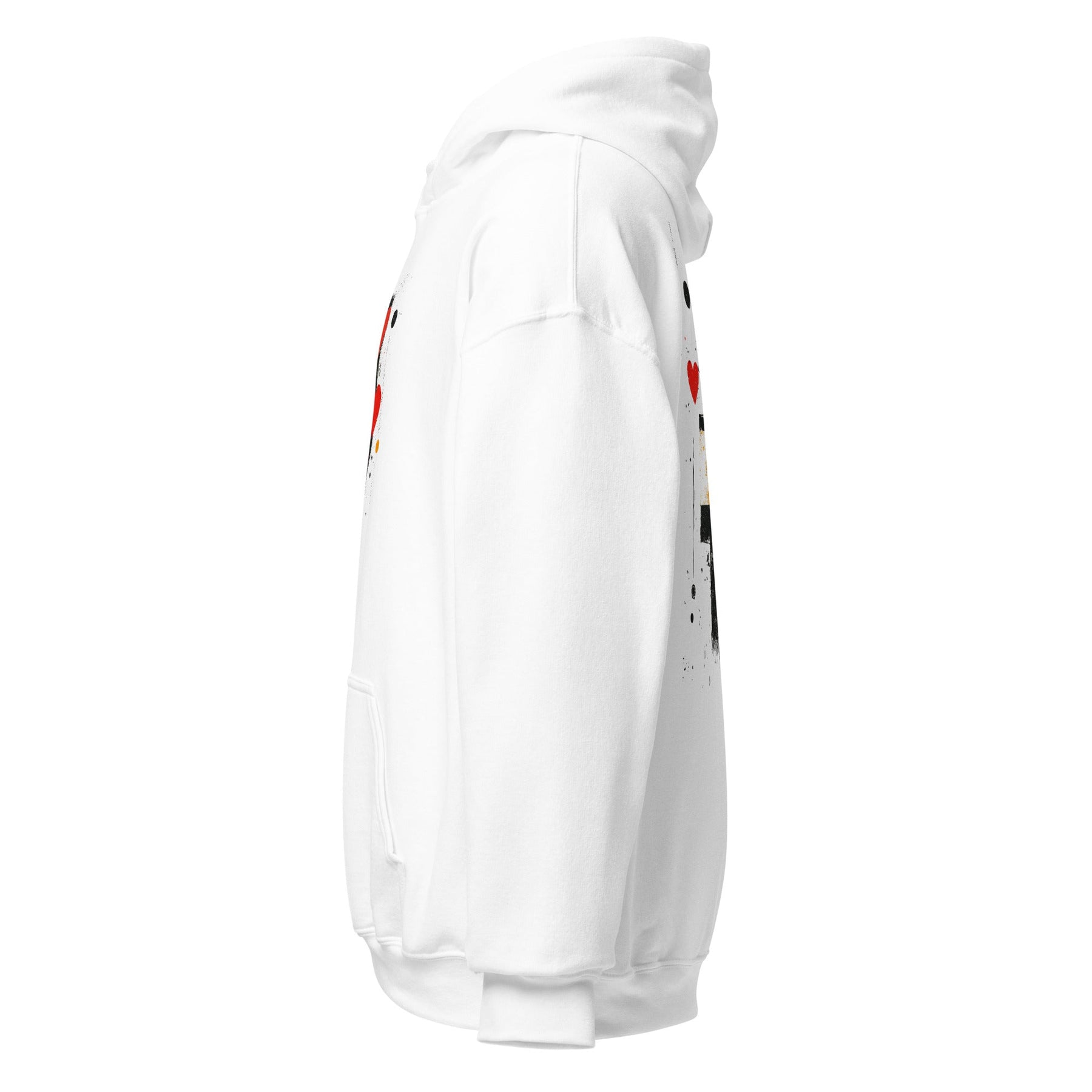 Make a statement with a unisex heart hoodie that blends comfort, contrast, and creative expression.